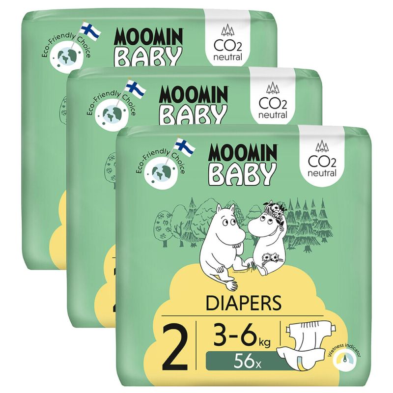 Scutece hipoalergenice Moomin Baby mărimea 2 (3–6 kg) – 56 buc | bio ultra absorbante